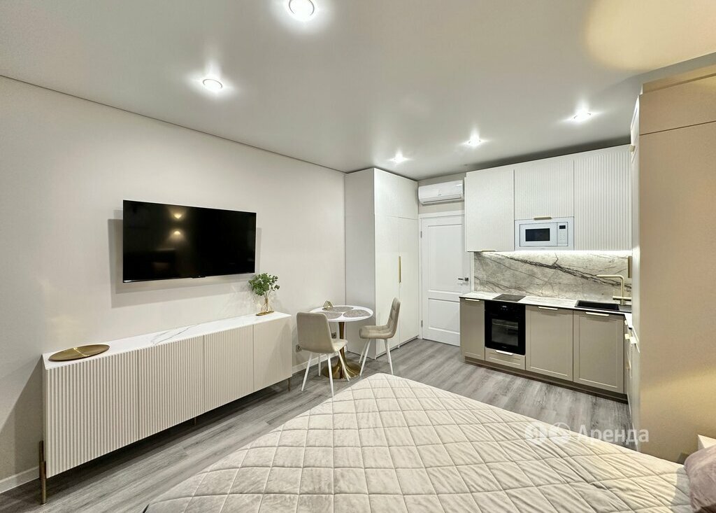 Сдаётся студия площадью 30 кв.м. с евроремонтом на 8 этаже в 12-этажном доме на срок от 11 месяцев. Из техники есть: