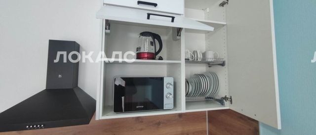 современной кухней (микроволновка, вытяжка, посудомойка),
