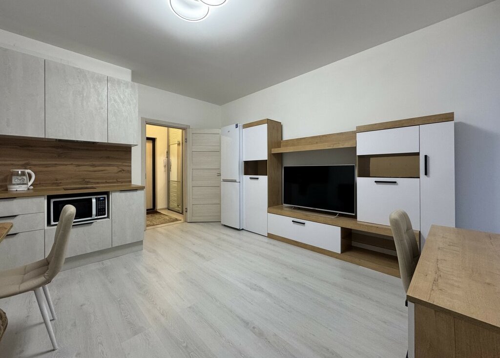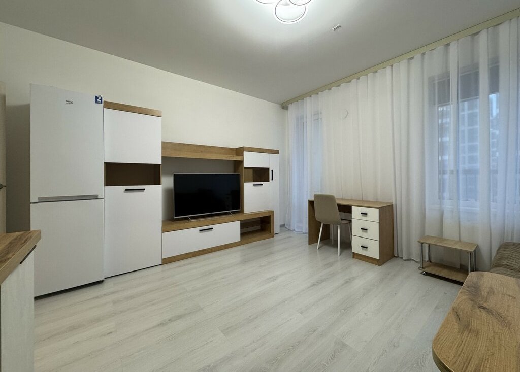 Светлая квартира с двумя окнами и просторной лоджией, есть все необходимое для проживания: