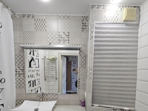 Кухня объединена с жилой зоной — удобно, современно и визуально даёт больше света. Раздельный санузел, свежая сантехника и плитка.