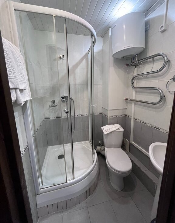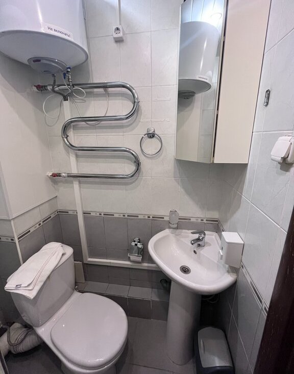В санузле подогрев полов.