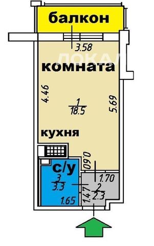 Квартира-студия: Санкт-Петербург, проспект Авиаконструкторов, 63 (23 м²)