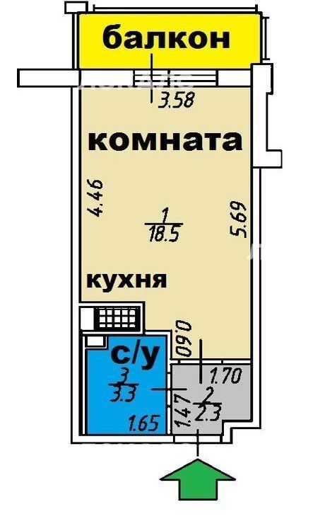Квартира-студия: Санкт-Петербург, Яхтенная улица, 34 (24.1 м²)