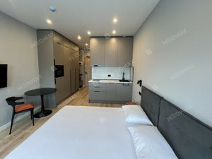 Сдаётся студия площадью 25 кв.м. с дизайнерским ремонтом на 4 этаже в 16-этажном доме на срок от 11 месяцев. Из техники есть:
