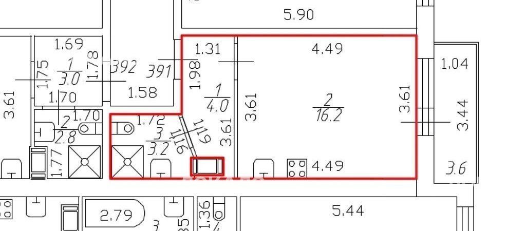 Студия Санкт-Петербург пос. Шушары, просп. Старорусский, 3к2 (18.9 м²)