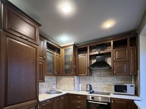 + В квартире есть все необходимое для комфортного проживания: мебель, кровать, кухня, варочная поверхность, духовой шкаф, холодильник и стиральная машина, телевизор;