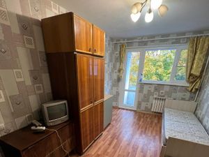 Прекрасная комната: светлая, теплая. Пол: паркет. Мебель: диван, шкаф, стол, телевизор. В комнате холодильник, микроволновка. В коридоре стиральная машина. Спокойная квартира, один сосед.
