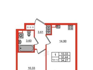 1-комнатная квартира: Санкт-Петербург, набережная реки Каменки, 17к2 (33 м²)