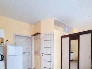 +ку. Студия в ЖК Чистое небо. Застекленная лоджия. Есть эл.плита, посуд.машина, СВЧ, стирал.машина, чайник, холодильник, сушильная и гладильная доски. Кровать. Гардеробная. Рассмотрим 1-2 человек, пару. Показы в любое время, ключи у агента.