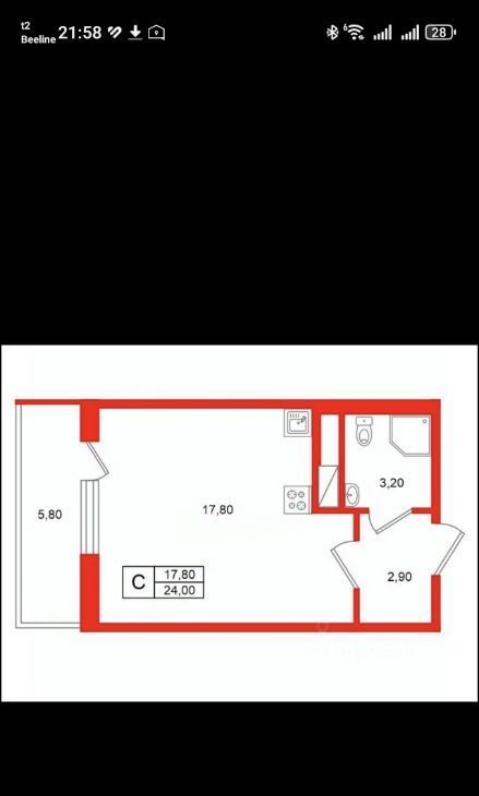 Квартира-студия: Санкт-Петербург, Верхне-Каменская улица, 7к1 (24.8 м²)