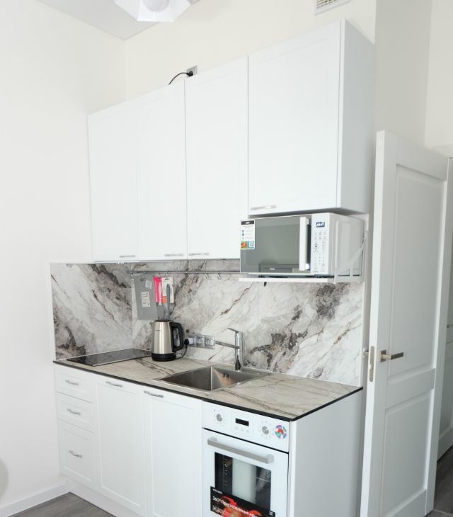 Есть все, что может быть в студии - полноценная кухня с посудомойкой и духовкой;
