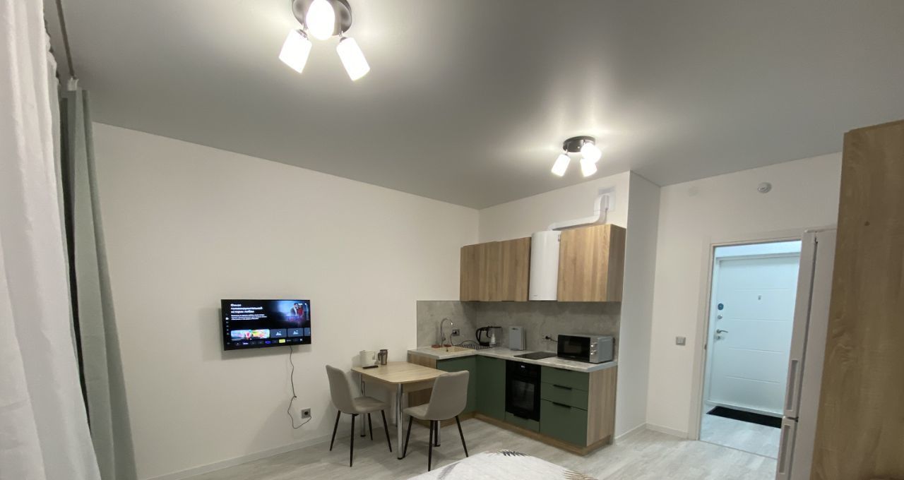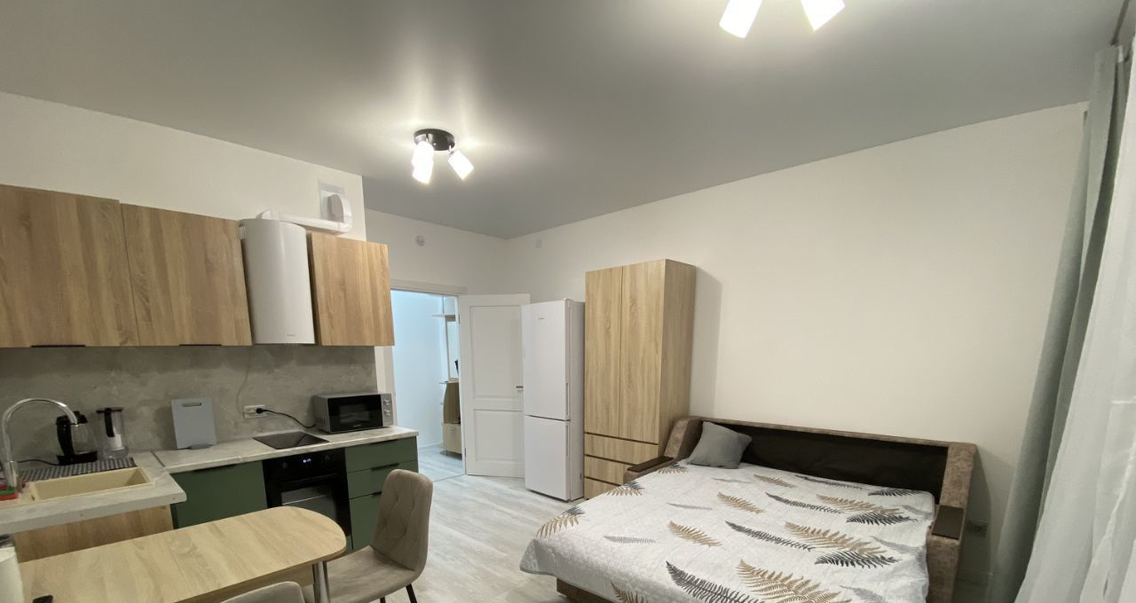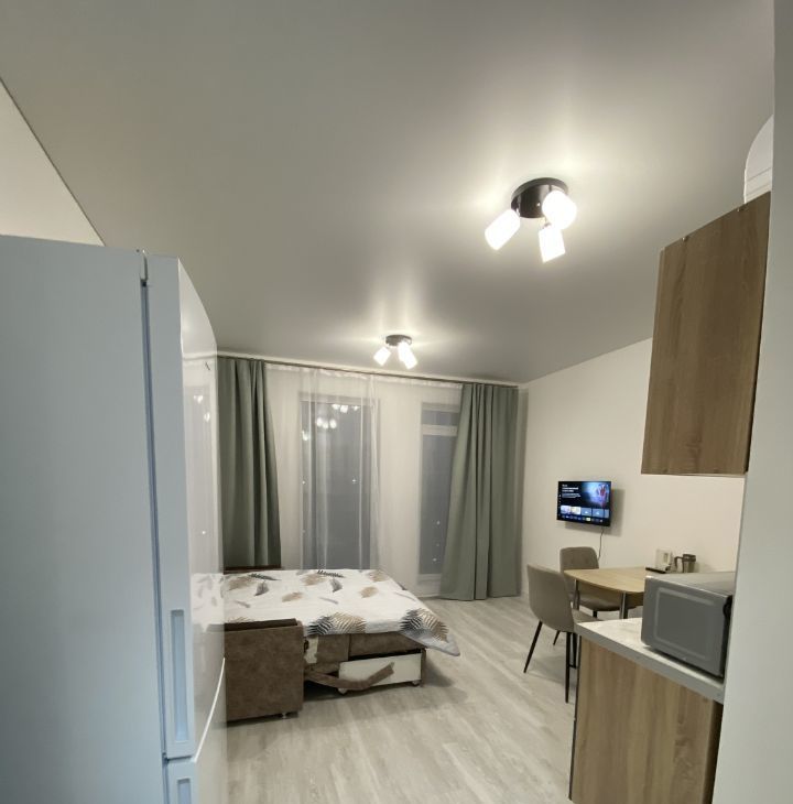 Студия с качественным ремонтом и стильным дизайном.