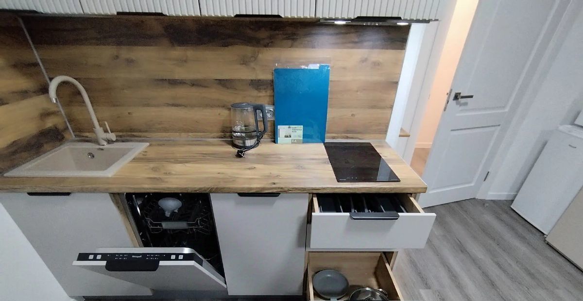 - Полноценная продуманная кухня с посудой и посудомойкой.