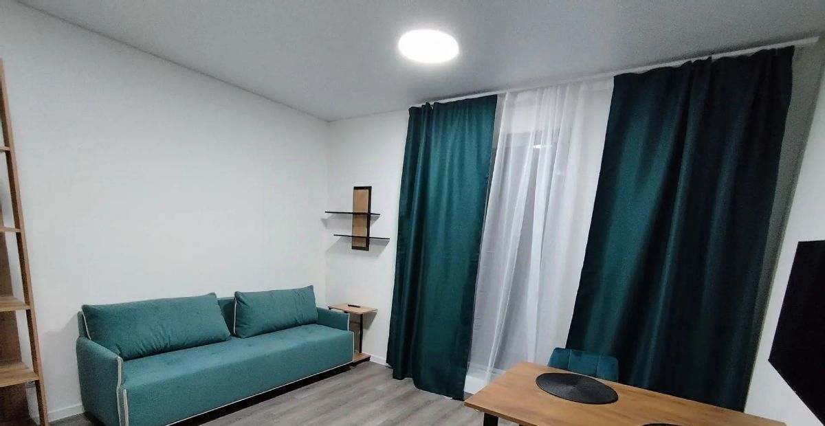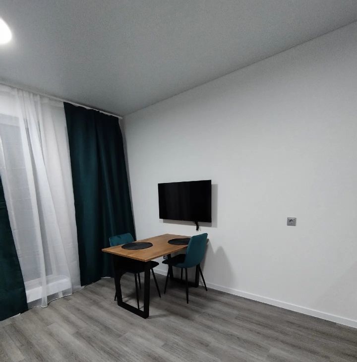 Квартира расположена на 6-м этаже, высота потолков 2.8 метра, панорамные окна, качественный ремонт от застройщика. В квартире еще никто не проживал. Комната правильной квадратной формы. Застекленная лоджия. Шторы блэкаут. Вся мебель и техника новые.