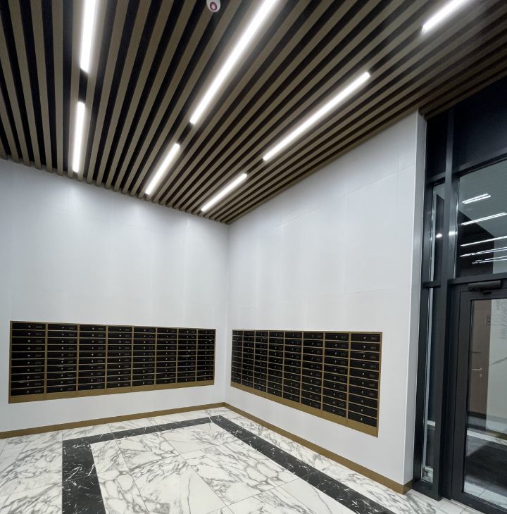 Рядом с домом — магазины Магнит, Дикси, Пятёрочка, Пекарни, Поликлиника. Подземный паркинг. Парковка рядом с парадной