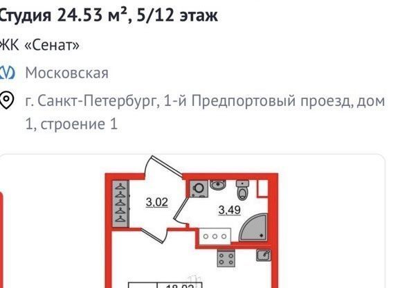 Студия Санкт-Петербург 1-й Предпортовый проезд, 1 (24.53 м²)