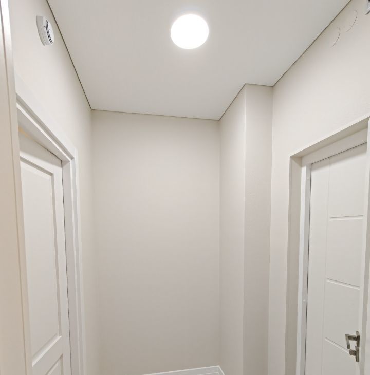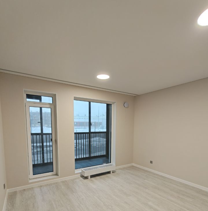 Качественно улучшена косметика после застройщика: выполнено окрашивание стен, добавлено освещение и скрытый карниз для штор.