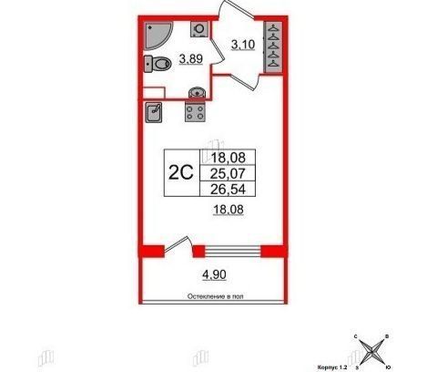 Студия Санкт-Петербург 1-й Предпортовый проезд, 1 (25.0 м²)