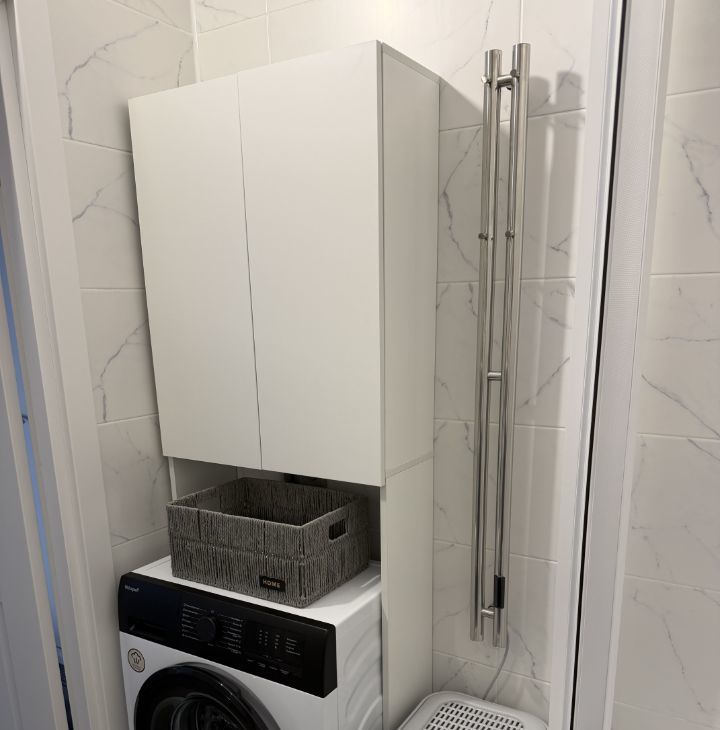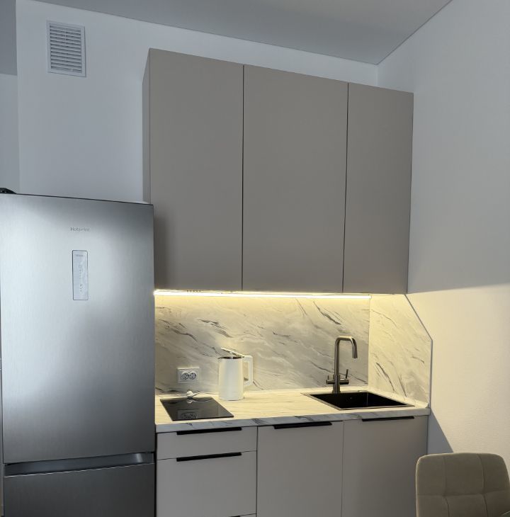 • Современная функциональная кухня с подсветкой под заказ с новой, качественной бытовой техникой (варочная плита, микроволновая печь, вытяжка, посудомоечная машина, холодильник Hotpoin, пылесос, стиральная машина, отпариватель, чайник, телевизор+смарт ТВ)