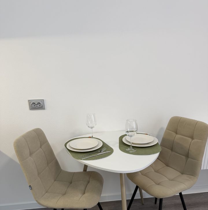 • Квартира с функциональной, современной мебелью: удобные стулья, стол в комплект кухни, тумбы(под ТВ и прикроватная),кровать двуспальная,шкаф-гардеробная в прихожей,