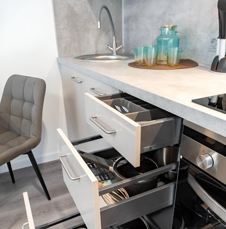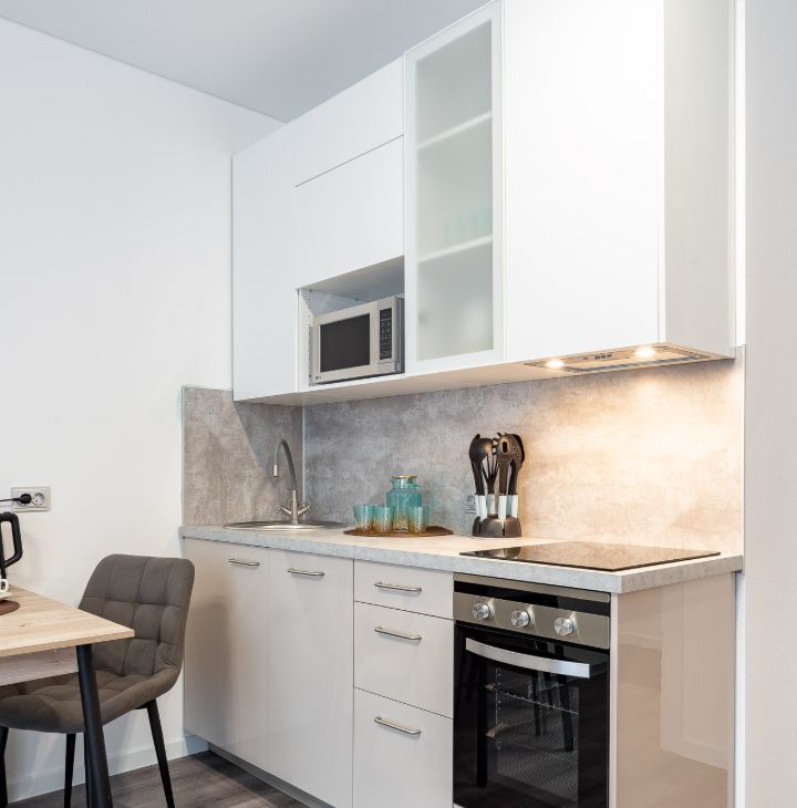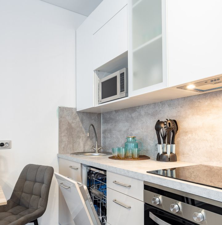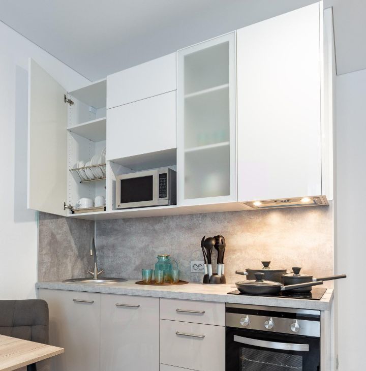 -вся бытовая техника: холодильник, стиральная машина, посудомоечная машина, духовой шкаф, пылесос, чайник, утюг, микроволновка, сушилка, гладильная доска, швабра.