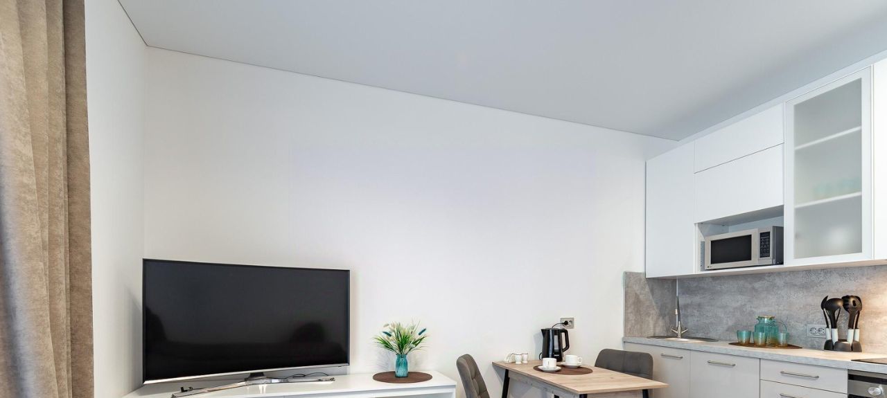 На стене над диваном и над кух.столом, в ближайшее время будут висеть красивые бра)