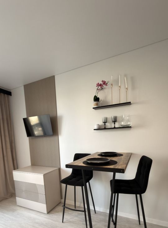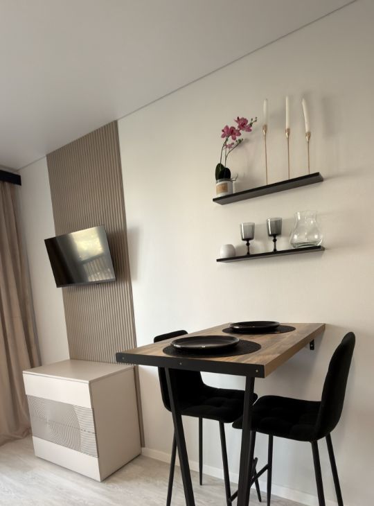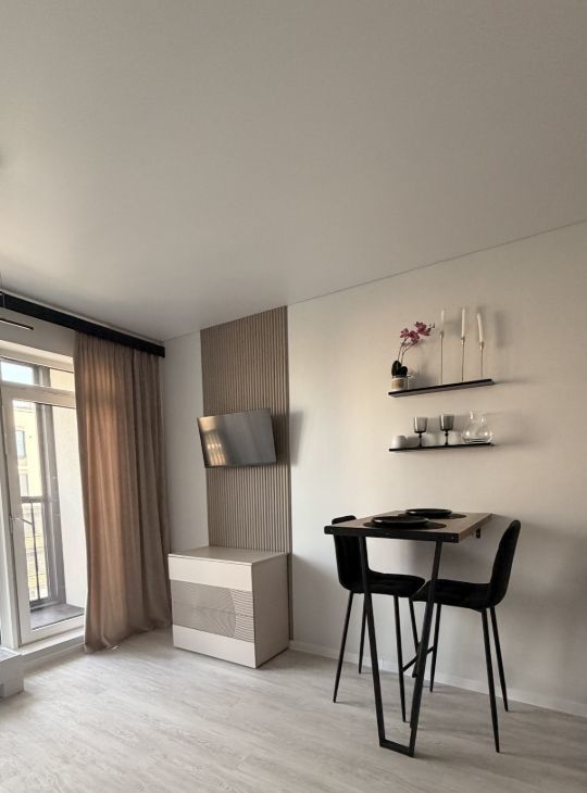 Квартира с дизайнерским ремонтом, который создает неповторимую атмосферу уюта и комфорта. В студии есть вся необходимая мебель: как на кухне, так и в комнате. Оснащена современной техникой — холодильник, посудомоечная машина, телевизор и стиральная машина. Санузел совмещенный, оборудован душевой кабиной. Из окон открывается вид на тихий двор, а наличие балкона позволяет наслаждаться свежим воздухом.