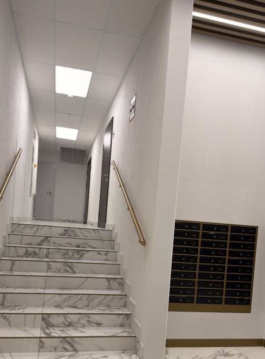 Дом в отличном состоянии, оборудован пассажирским и грузовым лифтами, поэтому можно легко добраться до квартиры даже с крупными покупками. В шаговой доступности расположены школы, детские сады, клиники и магазины, что делает это место идеальным для семей с детьми.