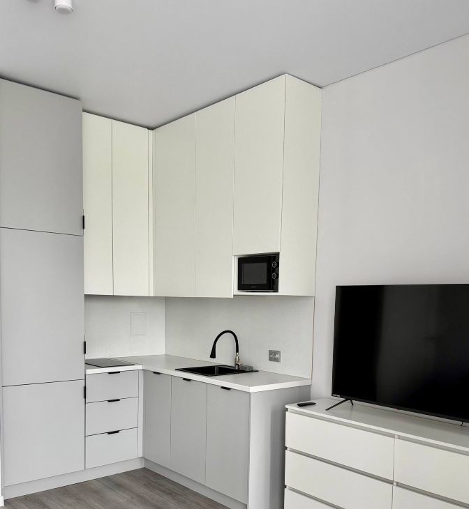 Уютная студия с евроремонтом, расположенная на 12-м этаже современного дома. Общая площадь квартиры составляет 24 кв. м, из которых 18 кв. м - жилая зона и 5 кв. м - функциональная кухня. Высокие потолки в 2.9 метра создают ощущение простора и света. Окна выходят на улицу, поэтому в квартире всегда светло и приятно находиться.