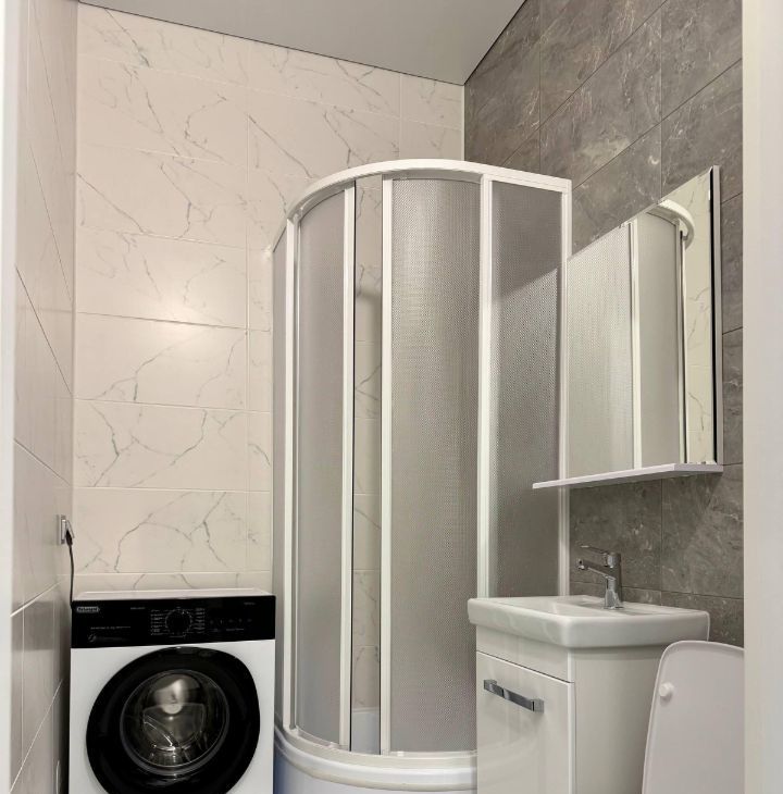 Квартира полностью оборудована для комфортного проживания. В наличии вся необходимая мебель и современная техника: холодильник, посудомоечная и стиральная машины, а также телевизор. Ванная комната оснащена душевой кабиной.