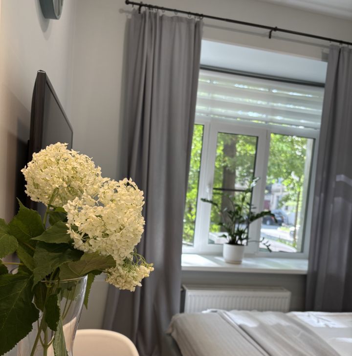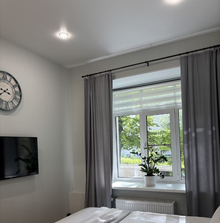 От метро Василеостровская 7 минут пешком. Современный ремонт, высокие потолки. Хорошая звукоизоляция сталинского дома. Возможна парковка вашего авто в закрытом дворе.