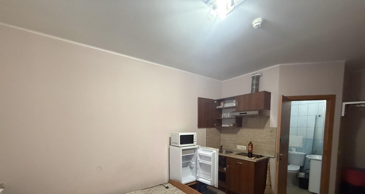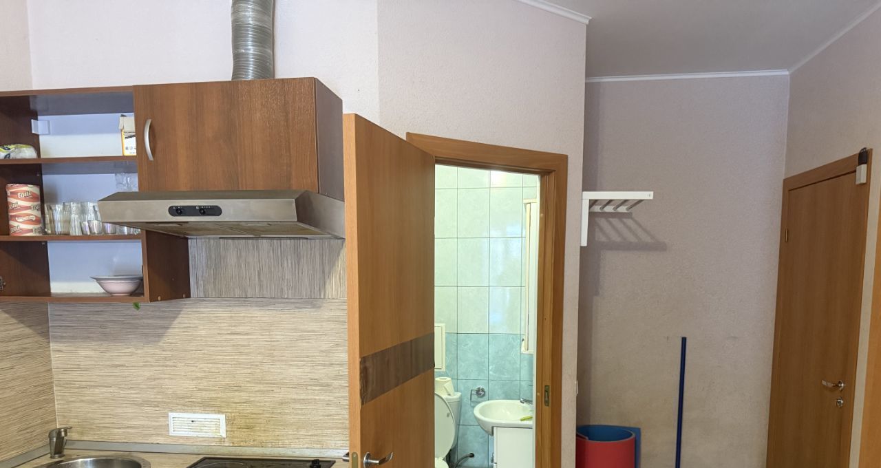 В квартире сделан евроремонт, всё продумано до мелочей для вашего комфорта. В студии есть вся необходимая мебель как в комнате, так и на кухне. Из техники в вашем распоряжении холодильник, телевизор и стиральная машина. В ванной комнате установлена современная душевая кабина. Окна выходят во двор, поэтому в квартире всегда тихо и спокойно.