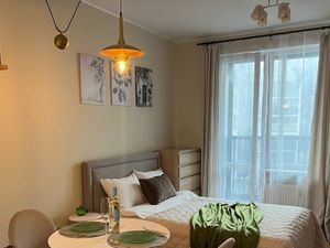 Студия выполнена с дизайнерским ремонтом и оборудована всем необходимым для комфортного проживания. В квартире есть удобная мебель как на кухне, так и в комнате. Совмещённый санузел оснащён современной душевой кабиной. Для вашего удобства предусмотрены холодильник и стиральная машина, а также подключён интернет, чтобы вы всегда оставались на связи.