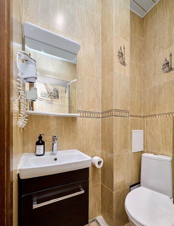 Дом расположен в закрытой территории, что гарантирует дополнительную безопасность и тишину. В квартире совмещенный санузел, который выполнен в современном стиле.