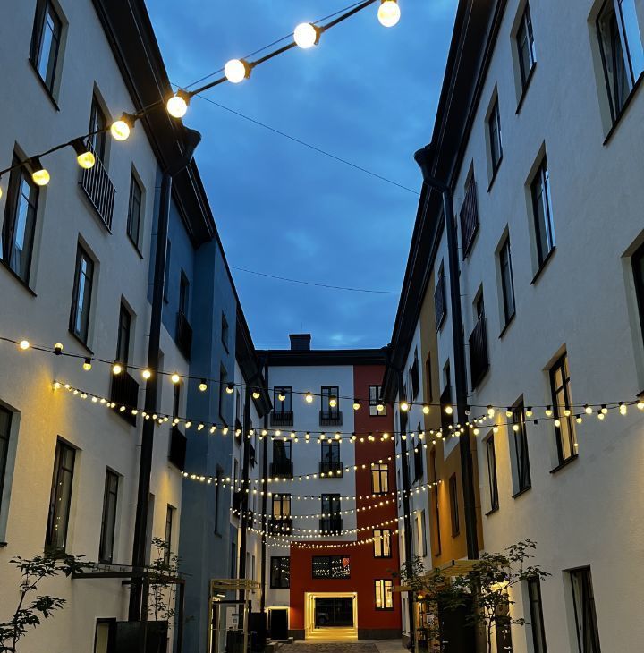 Вечером во дворе зажигают фонарики.