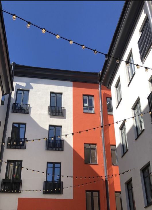 О доме: жилой проект Orange.Life! - реновация (капитальный ремонт) доходного дома Баженова. Дизайнерские холлы, закрытый внутренний двор с брусчаткой, столиками и скамейками, система контроля доступа - все на камерах, места для велосипедов и колясок. Есть общая прачечная и входная зона, где можно выпить кофе, а также консьерж-сервис.