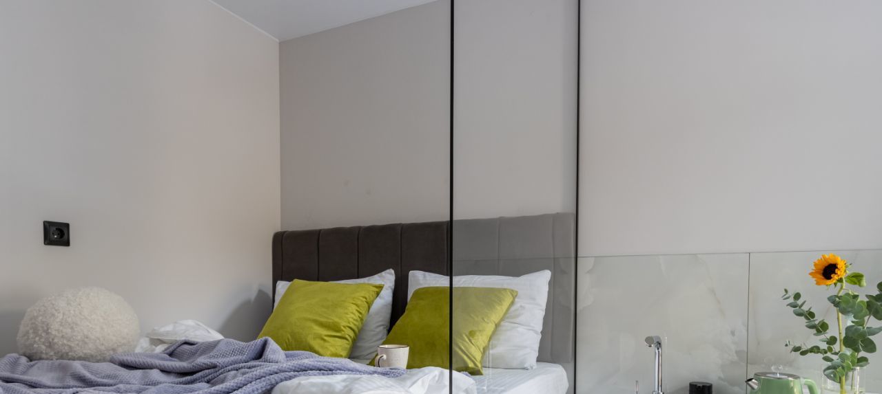 Планировка: продуманная студия, кухня, совмещенный санузел с душевой кабиной,