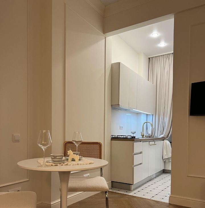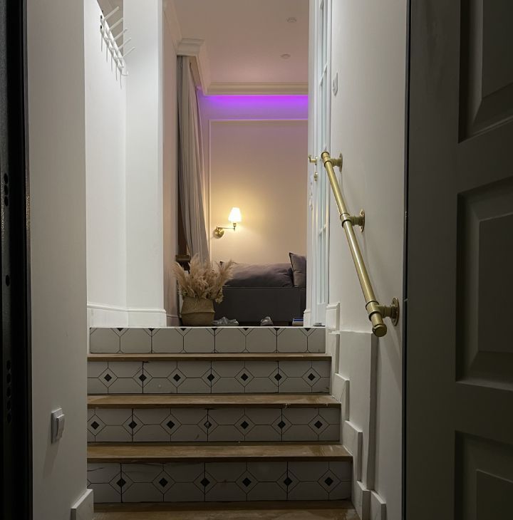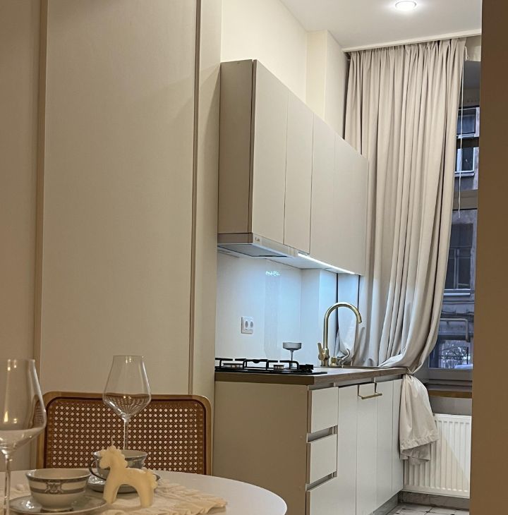Квартира расположена на бельэтаже, вход отдельный. Окна во двор, очень тихо