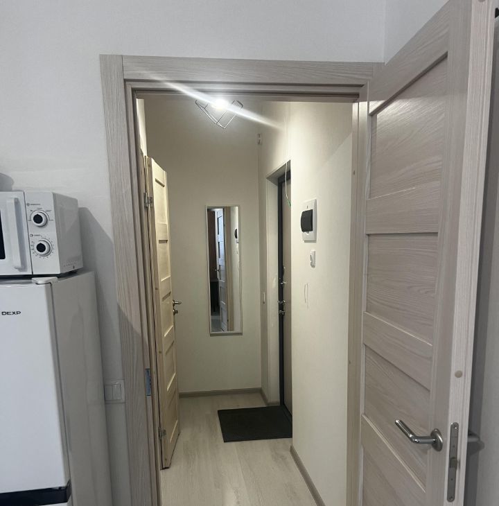 17. 2 парадная .Общая площадь квартиры 24.7 кв. м жилая + балкон 4/5 кв.Квартира расположена на 11 этаже 14-этажного дома, построенного в 2023 году. Высота потолков 2,7 метра. Окна выходят во двор парковки, что гарантирует тишину и спокойствие.