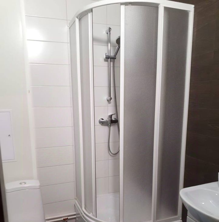 Санузел с душевой кабиной — всё аккуратно и в рабочем состоянии