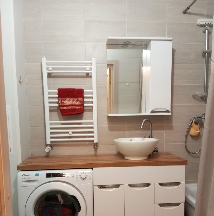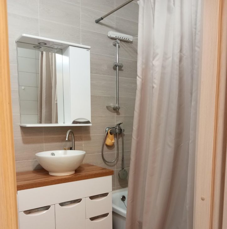 В квартире выполнен дизайнерский ремонт, который сочетает в себе стиль и функциональность. В комнате и на кухне есть вся необходимая мебель. Очень много мест хранения. В ванной комнате — полноценная ванна, что добавляет комфорта в повседневную жизнь. Лоджия утеплена и оборудована в уютную спальню.