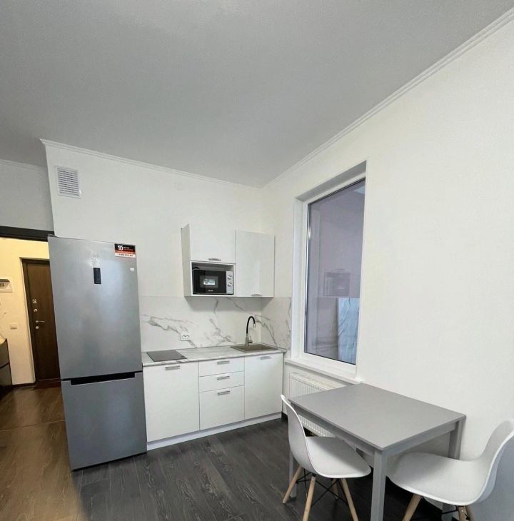 Студия ранее не сдавалась, оборудована необходимой мебелью: шкаф, стол, кухонный гарнитур, двухместный диван.