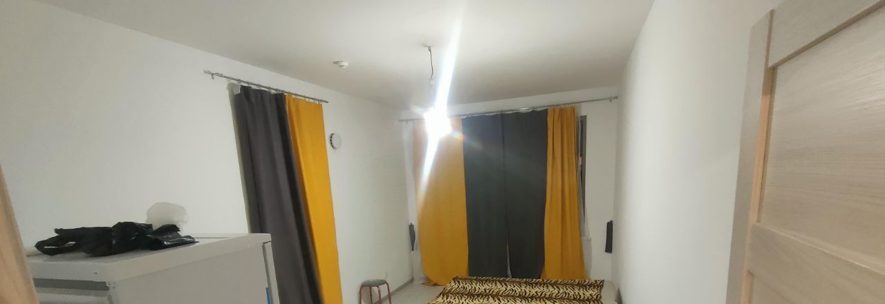 В комнате есть диван(не складывается, сломан) и раскладное сиденье-кроватка, складной столик и две табуретки. При необходимости можно всё убрать на балкон(кроме холодильника , его можно в коридор переместить) чтобы было больше свободного пространства либо полностью пустая комната.