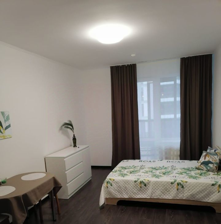 Сдаётся уютная студия с евроремонтом в современном монолитно-кирпичном доме, построенном в 2022 году. Общая площадь квартиры — 27 кв. м, жилая — 25 кв. м. Квартира расположена на 3 этаже 25-этажного здания. Высокие потолки (2.77 м) создают ощущение простора. В квартире есть всё необходимое для комфортного проживания.