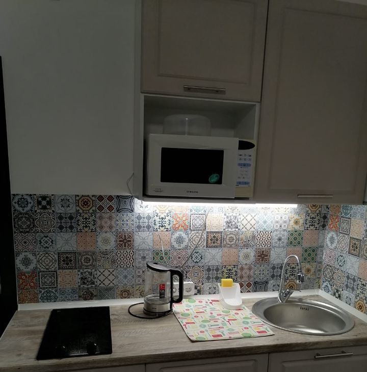 Студия полностью меблирована: в комнате и на кухне есть вся необходимая мебель. Встроенная техника включает в себя холодильник и стиральную машину. В ванной комнате установлена душевая кабина. Лоджия станет отличным местом для отдыха. Интернет уже подключён, поэтому вы всегда будете на связи.