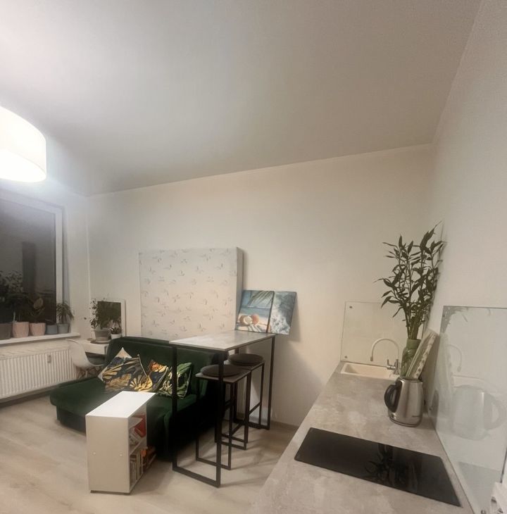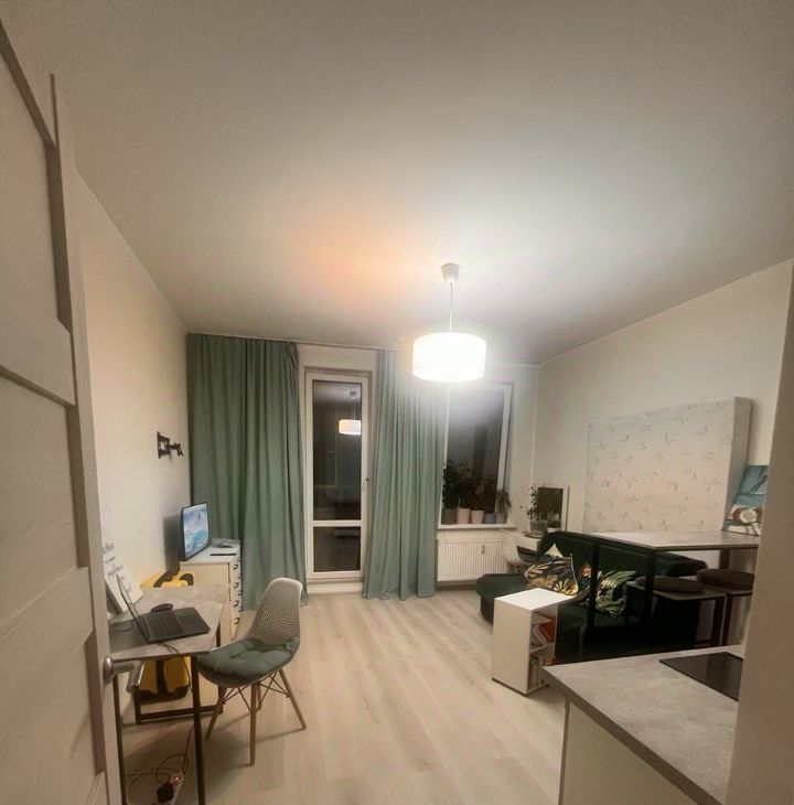 В студии жила одна аккуратная девушка 1.5 года . Техника и мебель новые , есть гарантия. Телевизор ( смарт) и машинка ( на 10 кг с сушкой) работают по вайфай, индукционная плитка, духовка.Вид на парк шикарный ( парк через дорогу)