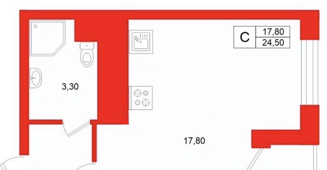 Студия Санкт-Петербург аллея Арцеуловская, 21 (24.5 м²)