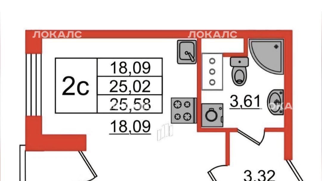 Студия Санкт-Петербург аллея Арцеуловская, 21 (25.0 м²)