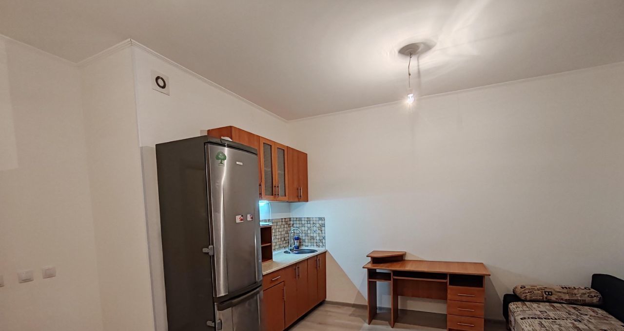 В квартире есть кухонный гарнитур, холодильник.