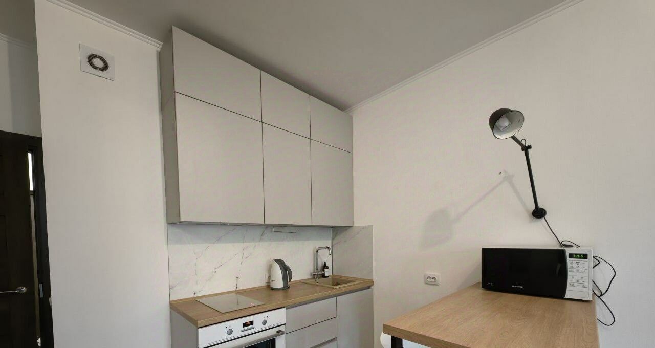 Сдам на длительный срок студию в ЖК Чистое Небо. Хорошая светлая отделка от застройщика `Setl Sity`(обновлённый формат отделки). Общая площадь, без балкона 25 кв. м., Полы ламинат, окна стекло-пакеты, в сан. узле пол с подогревом. Отличный вид из окон во двор, на уже построенные дома. Большая застеклённая лоджия. В квартире есть вся необходимая бытовая техника и мебель: варочная панель, духовой шкаф, микроволновая печь, холодильник, стиральная машина, телевизор, барная стойка со стульями, вместительный кух. гарнитур с кухонной утварью, шкаф, комод, большой двух-спальный диван. Много места для хранения вещей. Для жителей дома в парадной есть колясочная. Рядом с парадной располагается открытая гостевая парковка и отдельно выделенная от машин велодорожка для катания на роликах, самокатах или велосипеде ( по проекту застройщика данная трасса будет проходить по всему жилому комплексу). Так же рядом с домом располагается школа, детский сад и благоустроенная площадь с фонтаном и зоной отдыха, детская площадка и площадка с тренажерами. Закрытый двор без машин. От ст. метро Старая Деревня, Комендантский пр., Пионерская, 10 минут транспортом, рядом автобусная остановка. В пешей доступности открыты магазины `Пятерочка`, Леруа Мерлен, Лента, аптеки, кафе, кондитерские и др. магазины. Стоимость аренды 27000 тыс. руб + к.у. (коммунальные услуги летом 1500 руб., зимой 2500 руб.) Залог 100%, можно разбить в два этапа. Просмотры по договоренности, ключи у агента. Комиссия 50%.